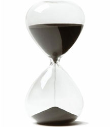 ومع بداية القرن الرابع عشر بدأ استعمال الساعة الرملية فقد كانت تعمل بنفس طريقة عمل الساعة المائية، والساعة الرملية بشكلها البسيط هي عبارة عن انتفاخين زجاجيين متصلان من خلال عنق صغير في الوسط، تنساب الرمال من الانتفاخ الزجاجي العلوي إلى الانتفاخ الزجاجي السفلي، وبانتقال الرمال من الجزء العلوي يدرك المراقب أن فترة زمنية معينة قد مضت.