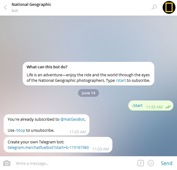 ربات تلگرام: مشترک نشنال جئوگرافیک