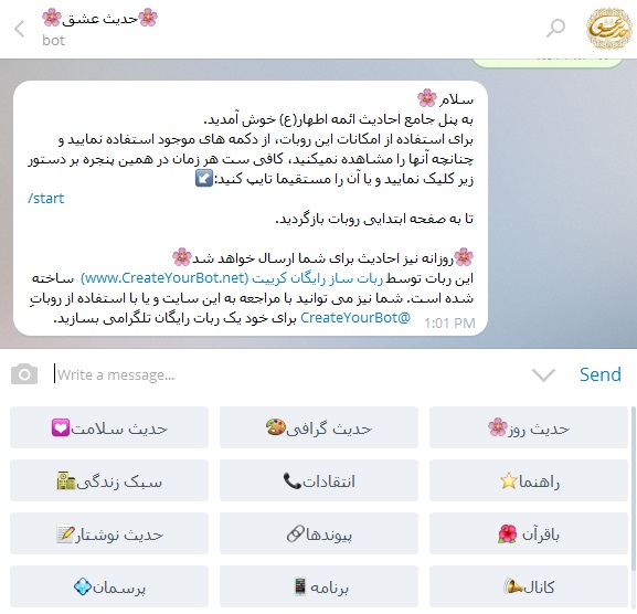 تلگرام, ربات تلگرام, ربات تلگرام حدیث, حدیث امامان, cfp