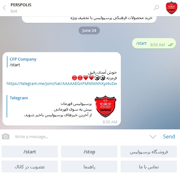 تلگرام, ربات تلگرام, ربات تلگرام پرسپولیس, ربات تلگرام اخبار پرسپولیس, cfp