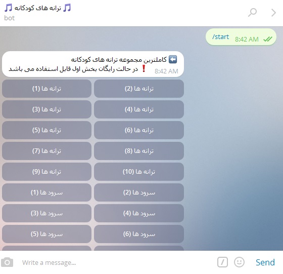 تلگرام, ربات تلگرام, ربات تلگرام ترانه کودکان, مجموعه ترانه کودکان, cfp