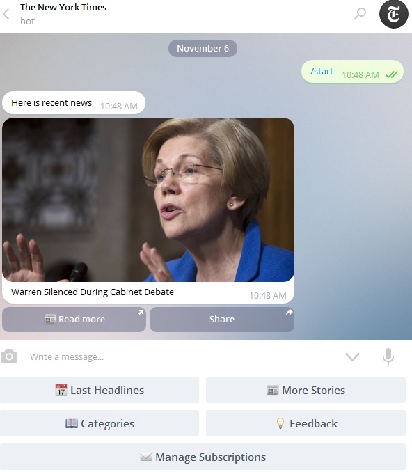 ربات تلگرام: پیگیری اخبار نیویورک تایمز