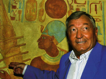 ارابه خدایان: کتاب "ارابه خدایان" توسط نویسندهای به نگارش درآمده که وی با تحمل رنج سفرهای بس طولانی، به جهانهای ناشناخته ای راه یافت که در تاریخ علوم و بخصوص باستانشناسی تحولی بوجود آورد. در کتاب "ارابه خدایان" سخنان او به خیال بیشتر شبیه است تا حقیقت و بطور اصولی، کار او متکی به باستان شناسی است. اما جهان علوم در سایر کشورهای جهان برداشت و خط تازهای در تحقیقات و نظرات او در زمینه تاریخ بسیار دور بشر و احتمال سفرهای موجودات بسیار باشعورتر از ما به کره زمین یافت.