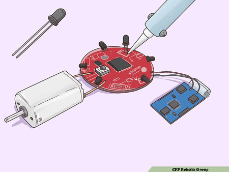 گام سوم: مجموعهای از LCDهای رنگی را به بورد لحیم کنید. شما میتوانید رباتهای خود را برای روشن شدن یک رنگ خاص برنامهریزی و حتی رفتار و یا حرکت برای هر سیگنال مختلف، قادر به برنامهریزی و دستورات لازم به ربات را دارید.