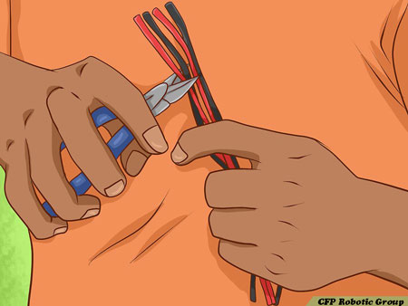 گام اول: برش چهار سیم با طول برابر. این کار باعث اتصال مدار پیشران موتور با بورد آردوینو می‌شود.