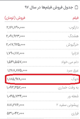 میزان فروش فیلم خوک (تا تاریخ 3 آبان 1397)