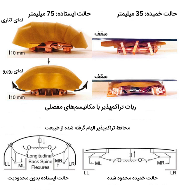 برای دانشمندان دانشگاه کالیفرنیا در برکلی (UC Berkeley) سوسکها راه جدیدی را در فکر کردن به رباتها باز کردهاند. این گروه پس از مطالعات بسیار در خصوص رفتار سوسکها برای گذر از شکافها و ترکهای موجود آنها، موفق به طراحی رباتی شدند که تواناییهای مشابهی را داراست. سوسکها ممکن است به نظر شما بسیار زشت و بد به نظر برسند اما کدام یک از شما میتواند تواناییهای فوق العادهی این موجود در حمله به زیستگاه شما (خانهی دوست داشتنی شما) را به چالش بکشد یا حتی دست کم بگیرد؟ تکامل این بار هم شما را شکست خواهد داد. در حقیقت گذر از شکافهایی که این موجود از آنها به شما میرسد تا ۹۰۰ برابر وزن بدن او به او فشار وارد میآورد با این حال پژوهشگران برکلی دریافتند که حتی در روزنههایی با اندازهی معادل یک چهارم بدنشان این موجودات میتوانند به سرعت حرکت کنند. نکتهی شگفت انگیزتر اینکه این موجودات میتوانند با تغییر آرایش پاهای خود به طرفین در یک شکاف ۶ میلیمتری به سرعت یک شکاف ۱۲ میلی متری حرکت کنند. به بیان دیگر این موجودات که حدود ۱۲ میلیمتر ارتفاع دارند میتوانند تا ۲.۵ میلی متر بدن خود را جمع کنند که فوق العاده است. کافی است تصور کنید بتوانید ارتفاع ماشین خود را تا بیش از ۵ برابر افزایش یا کاهش دهید!